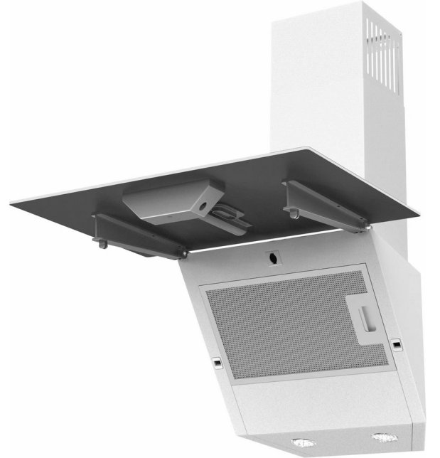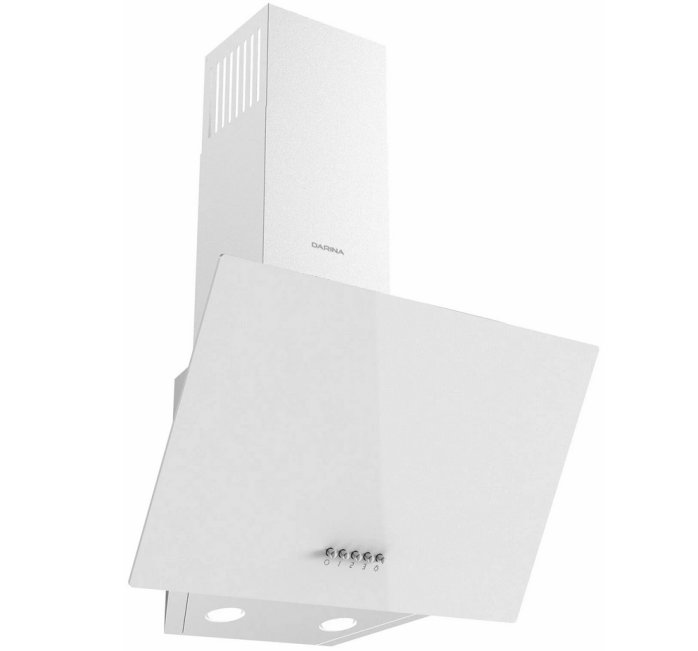 Наклонная вытяжка DARINA SLIDE G600W с фасадом из белого стекла значительно сэкономит пространство на кухне. Она имеет высокую производительность, при этом почти бесшумна.